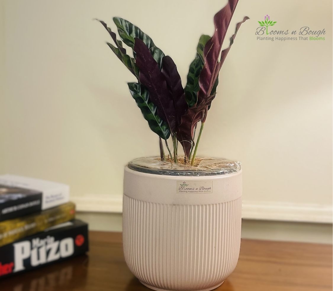 The Pink Ribbed Terracotta Pot with Calathea Rattlesnake Plant makes for a thoughtful gift for plant lovers, housewarmings, or corporate occasions. With easy maintenance and high aesthetic appeal, the Calathea Rattlesnake in a pink terracotta pot is more than just decor—it’s a living statement of elegance and sustainability.