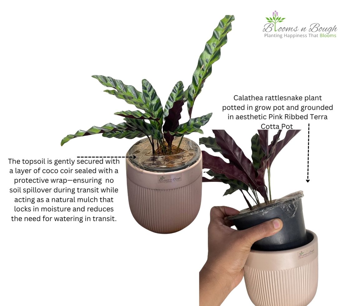 Why Choose Pink Ribbed Terracotta Pot with Calathea Rattlesnake Plant?
