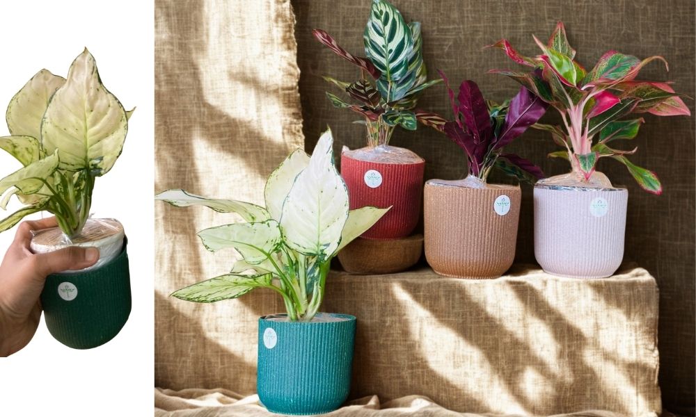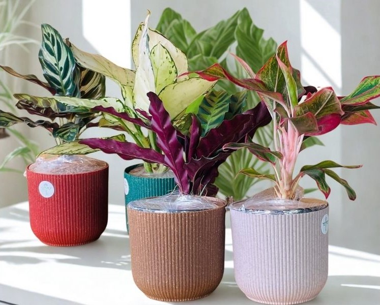 A vibrant combo of 4 indoor air-purifying plants—Calatheas & Aglaonemas—potted in stylish 4-inch Ibiza Eco Planters, Lightweight, UV-resistant, and 100% recyclable, is surely a must have for every space.