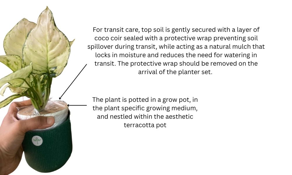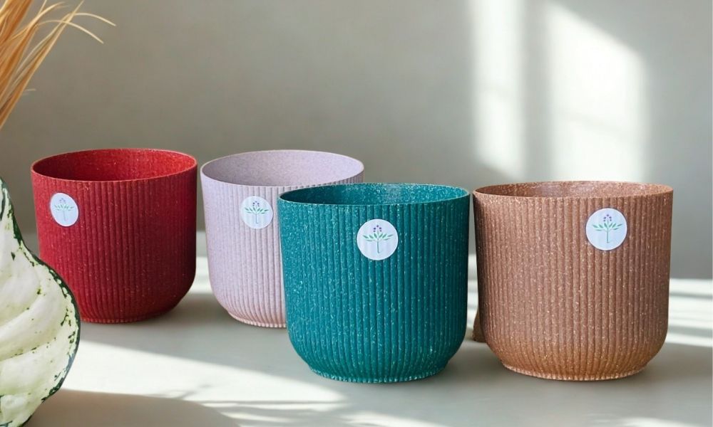 Each plant comes nestled in a grow pot, which is then placed inside the 4-inch Ibiza Eco Planter made from 100% recyclable materials. These eco pots are designed in soothing, earthy shades—teal, terracotta, blush pink, and coral red—bringing both color and calm to your interiors.